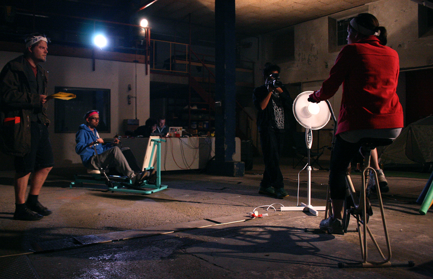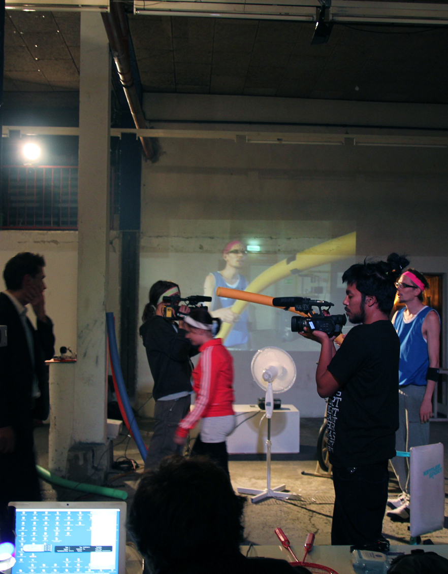 Dem Gedanken des Dokumentar lmemachers Frederick Wiseman, dass das doku- mentierte Material manipuliert werden muss, um als Film zu funktionieren, steht die Frage nach Autorschaft und Sprecherposition gegenüber. In dem Projekt “we, in exit” werden die Verwendung von dokumentierten Aussagen der InterviewpartnerInnen, die Vielstimmigkeit und die Ironie als offengelegte Taktik verstanden, die Differen- zen, Widersprüche und Ambivalenzen durchscheinen lässt. Die Performance wurde in leer stehenden Fabrikhallen bzw. Werkstätten umgesetzt: In der Eisenberger Fab- rik in Gmünd und im mo.e in Wien. Das Element des “Videodrehs” wurde in Performance eingebunden, ebenso wie die nur bruchstückhaft vorhandenen “Narrationen” von Probe, Aufführung, Workshop, Experiment, Selbsthilfehrupper, Ferienlager, etc. So wird eine Dokumentation entwickelt, dessen “Inszenierung” dazugehört.
